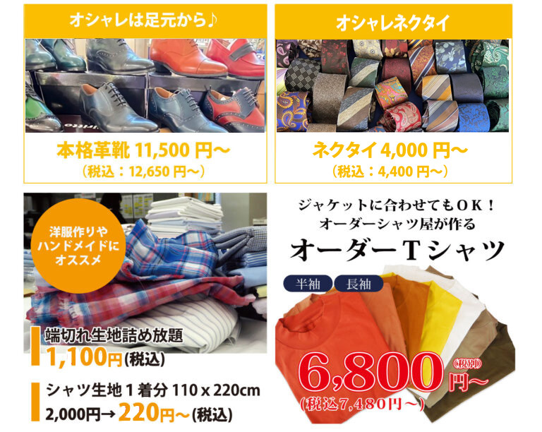 ほかにも、既製品などのカジュアルシャツやオーダーTシャツなどの販売も行う予定です