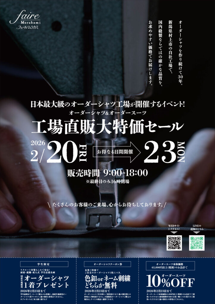 【4日間限定】2026年春夏の新作勢ぞろい!お買い得オーダーシャツ&スーツ販売会