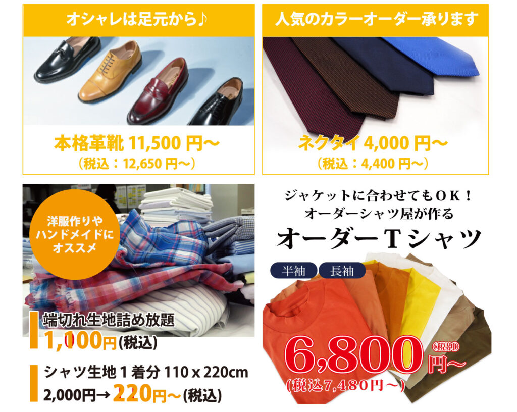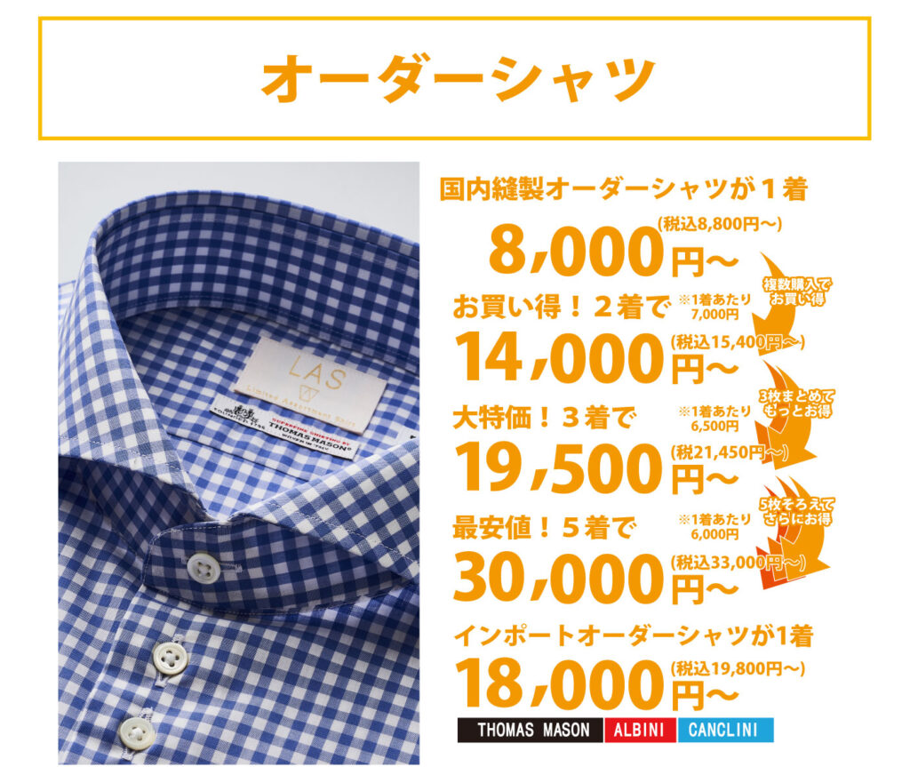 インポートから国産生地まで特別価格でワイシャツをお作り頂けます
