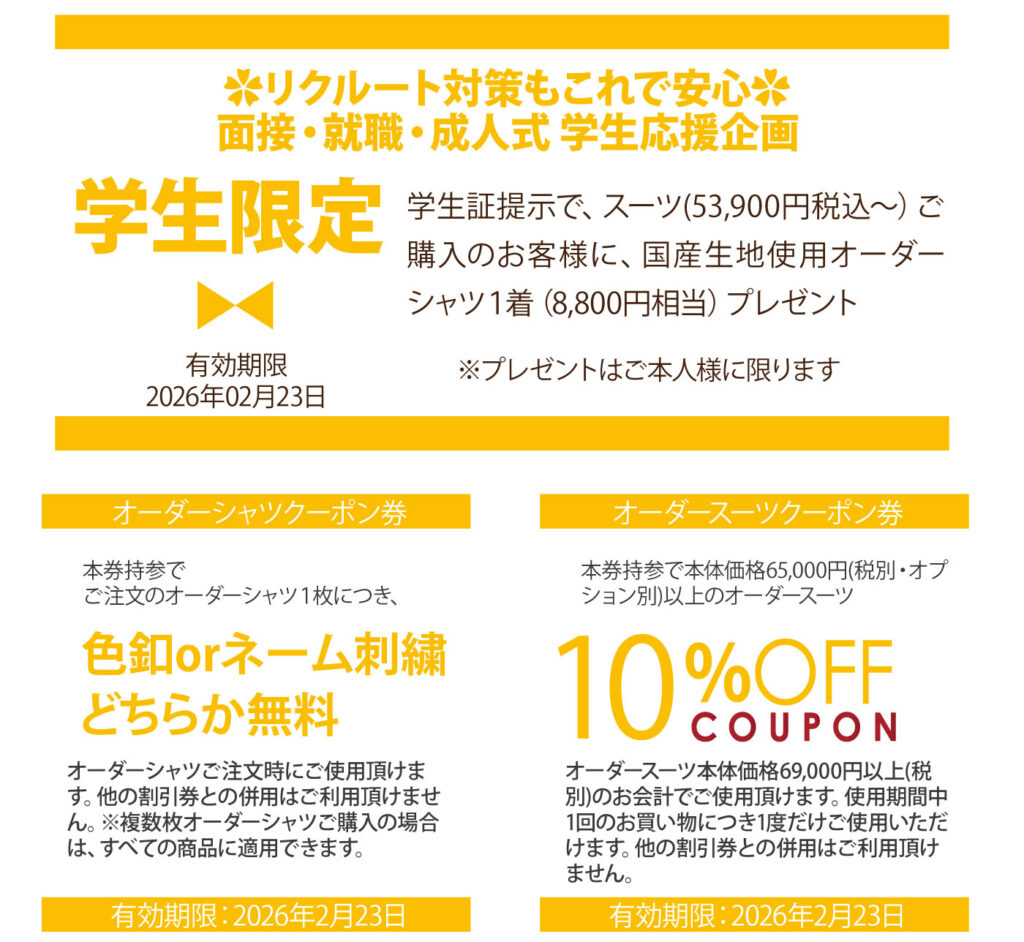 お買い得商品勢ぞろい!26年新作春夏物オーダーシャツ&オーダースーツ販売会開催致します